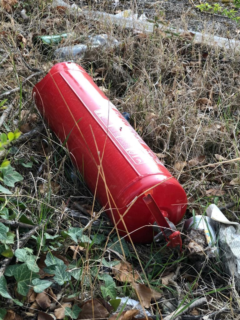 Chissà da dove provengono questi due estintori all’apparenza nuovi che sono stati abbandonati nel terreno antistante l’ex-Enel di viale Cappuccini? Rubati e poi abbandonati ? Chissà… (Foto di Luciano Berruto)