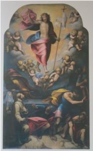 Attorno al 1615, quando si trovava a Chieri per decorare la chiesa di San Domenico, Guglielmo Caccia (Il Moncalvo), dalle Monache Clarisse di Chieri ricevette l’incarico di dipingere un Cristo Risorto, da collocare sull’altar maggiore della loro cappella che era dedicato, appunto alla Risurrezione. Dopo la soppressione napoleonica del monastero, quel quadro finì nella chiesa di San Giorgio. Per sapere di più su questa vicenda, e sul quadro, vedere … “Chieri, la Grande Pinacoteca”, cliccando qui.