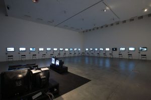 Febbraio 2012. Ci troviamo in un’ampia sala della Fondazione, dove siamo accolti dalle prime pagine di 151 quotidiani da tutto il mondo, datati 12 settembre 2001. Le immagini dell’attacco alle Torri Gemelle di New York, presentate nell’installazione a parete 9/12 Frontpage (2001) di Hans-Peter Feldmann, documentano come i giornali di tutte le nazioni abbiano riportato la notizia all’indomani dell’attentato, enfatizzandone l’iconicità. L’opera ci forza a considerare la nostra relazione ambigua con queste immagini: consumatori di uno spettacolo violento e terrificante, non riusciamo a distogliere lo sguardo. La mostra “Press Play. L’arte e i mezzi d’informazione” ha affrontato il tema del regime mediatico che caratterizza la nostra società, in cui la velocità della comunicazione, il flusso costante di informazione in diretta e la saturazione di immagini concorrono a plasmare la realtà: un orizzonte in cui anche la notizia diventa prodotto di consumo e la catastrofe garanzia di successo. Il tema dell’informazione come unico rapporto che intratteniamo con la realtà esterna è oggi molto stringente, soprattutto se consideriamo quanto questa possa essere direzionata, resa parziale o univoca. Questo regime mediatico di “verità” comunica l’andamento dell’attuale emergenza sanitaria ricorrendo alla narrazione bellica e all’immagine del “nemico invisibile”, alternata alle statistiche elaborate sotto forma di centinaia di dati e grafici, prodotti dalle diverse politiche nazionali per restituire una quantificazione visibile, eppure inevitabilmente parziale, dell’epidemia in corso. A partire dall’invito che Feldmann estende allo spettatore di rinegoziare il proprio ruolo passivo di voyeur del disastro spettacolarizzato, “Press Play” ha presentato le ricerche di altri 15 artisti, che adottano nel loro lavoro strategie proprie dei media per svelare, falsificare e risignificare le dinamiche di potere sottese al produzione di realtà. Ingrowth (2009) di Thomas Hirschhorn è una vetrina che ospita manichini perturbanti, feriti e mutilati, insieme a fotografie di violenza e di corpi sfigurati scattate da fotoreporter di guerra. L’installazione include ciò che normalmente non viene pubblicato, perché ritenuto materiale inadatto al largo pubblico, interrogandoci su quella porzione di storia che non è registrata, per convenzionalità legate al pudore o per politica dell’immagine. Il video Handsworth Songs (1986) di Black Audio Film Collective, con regia di John Akomfrah, si situa al confine tra reportage giornalistico e film sperimentale. Racconta gli esiti delle rivolte della comunità nera di Birmingham del 1985, utilizzando differenti fonti e temporalità non lineari. Attraverso la sovrapposizione di cronaca televisiva, materiali storici d’archivio e testimonianze dirette dei protagonisti dei disordini, Handsworth Songs decostruisce la rappresentazione univoca e stereotipata dei mezzi ufficiali, restituendo una ricostruzione contestuale e stratificata della complessità dei fatti.