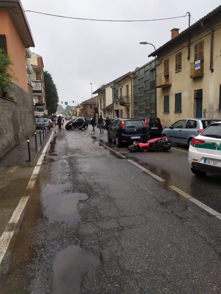 L’asfalto bagnato per la pioggia a dirotto è la probabile causa di un incidente a Chieri, nel pomeriggio di ieri mercoledì, in Strada Andezeno all’altezza del civico 45. Uno scooter è sbandato e si è schiantato contro una vettura in colonna. Il guidatore dello scooter, F.S., 28 anni di Chieri, è rimasto ferito in modo serio, avendo riportato fratture multiple: è stato trasportato in ambulanza al Cto di Torino. Illeso il guidatore dell’auto tamponata, un 40enne chierese. La polizia municipale sta ricostruendo l’esatta dinamica dell’incidente (nella foto)