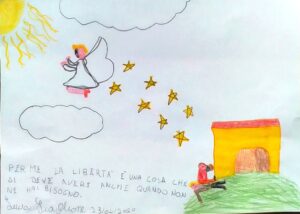 I giovani e la libertà al tempo del Coronavirus: sono in rete i lavori delle scuole nati nell’ambito dell’iniziativa “25 aprile: a distanza, ma insieme” che, nel giorno della Liberazione, ha coinvolto 104 Comuni dell’Astigiano nella lettura collettiva della poesia “Una sera di sole”. Dai piccoli della scuola dell’infanzia ai grandi dei licei, in tantissimi (oltre un migliaio) hanno risposto, individualmente o in gruppo, alla domanda: “Che cos’è per me la libertà?”. I lavori, realizzati a distanza sotto la guida degli insegnanti, e con la regia di Provincia e Ufficio Scolastico Provinciale, sono ora pubblicati sui siti web di una trentina di Comuni: disegni, video, scritti, poesie, fotografie ottenute con elaborazione digitale nei quali prende forma, con concetti semplici o pensieri più strutturati, un desiderio istintivo e profondo. Perché, indicano i giovani, non bisogna mai darla per scontata la libertà, così cercata ora che il virus l’ha confinata. E loro, chiusi in casa (dalla Valle Bormida al Nord Astigiano, dal capoluogo ai piccoli paesi sparsi ovunque per la provincia), s’interrogano e raccontano. “Ci stiamo mettendo nei panni di chi la libertà non l’ha mai avuta” osserva Francesca. Petar: “Oggi non basta solo vivere, ci vuole anche un po’ di sole, un fiore, un prato verde dove ci si sente liberi di fare cose giuste, cose utili”. Per i bambini la libertà è un bosco, il mare, entrare nell’arcobaleno, diventare farfalla o palloncino colorato. Per la piccola Giulia, 5 anni, “salutare e sognare gli unicorni”. Per gli adolescenti la libertà è “sentirsi di fare ciò che ci fa piacere ma senza distruggere quella degli altri”; “scegliere quello che si vuole per la propria vita, rispettando le regole”. “Tenere per mano le persone che amo senza avere paura” (Lucia), “essere libera da nuvole per la testa” (Sara). In tanti vorrebbero tornare a scuola, giocare con gli amici, dare un bacio ai nonni e, naturalmente, sconfiggere il virus invisibile. Nel disegno di Virginia, dai lunghi capelli di una giovane donna pensosa nascono e trovano il volo candide colombe. E poi: “vietato smettere di sognare” (Alessia). Ragionano anche, i ragazzi, sulla libertà nata 76 anni fa dalla Resistenza: c’è chi cita Pietro Calamandrei, chi Beppe Fenoglio e annota: “la libertà non è una questione privata”; chi s’immagina giovane partigiana e scrive una lettera all’amica, chi con matite colorate raffigura l’estinzione delle svastiche. “La libertà – il messaggio di Francesco – non è una fortuna giunta a noi per caso, ma una conquista da ricordare e preservare”. Accanto ai giovani, che bisognerebbe citare uno ad uno per l’impegno e la creatività messi in campo, ci sono insegnanti che cantano in video “Bella ciao” e cittadini che i tempi della scuola li hanno dimenticati da un pezzo, ma che vogliono parlare comunque di libertà. “Quella che abbiamo visto è una bellissima espressione di partecipazione civile” riflette Paolo Lanfranco, presidente della Provincia, promotrice dell’iniziativa sul 25 aprile a distanza con il Comune di Baldichieri e su idea della giornalista Laura Nosenzo. “In una situazione inedita e difficile che ci ha costretti a fermarci – aggiunge – siamo riusciti a coinvolgere molte persone, dai sindaci ai cittadini del futuro, finendo per riflettere tutti insieme sull’importanza della libertà, rileggere i messaggi del passato, riscoprire i valori della nostra comunità. Un’esperienza individuale e collettiva importante”.  “Torneremo ad abbracciarci – scrive Luca – Tutto sarà più bello di prima perché avremo capito!”. Latifa fa una cosa diversa da tutti gli altri: si scrive una lettera, “Alla me del futuro”, per non dimenticare mai che “la libertà non è un regalo, ma una conquista”. Nessun dubbio per i giovani: “La libertà esiste. Bisogna solo trovarla”. E una promessa: “A presto libertà”.