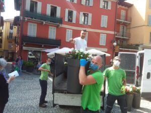pandemia; dopo il positivo confronto sui temi della viabilità si è chiuso un accordo tra l’assessore Giorgio Comoli, i floricoltori e i commercianti di Intra.Le vie pedonali si arricchiscono da oggi, lunedì 16 giugno, di circa novanta vasi fioriti e sei aiuole (due in piazza Ranzoni, due in piazza S.Vittore, una in via S.Fabiano e una in piazza Gramsci) con il contributo dei commercianti e l’offerta dei floricoltori locali.