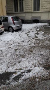Ennesima bomba di acqua con molta grandine, nel pomeriggio: epicentro Moncalieri, dove la grandine è caduta in abbondanza, ricoprendo tra l’altro il parcheggio del Centro Commerciale 45°Parallelo. Il forte vento ha provocato la caduta di un albero, che ha sfiorato due auto parcheggiate. Strada Tiro a segno allagata, con i vigili del fuoco chiamati a trarre in salvo due persone rimaste bloccate in auto.