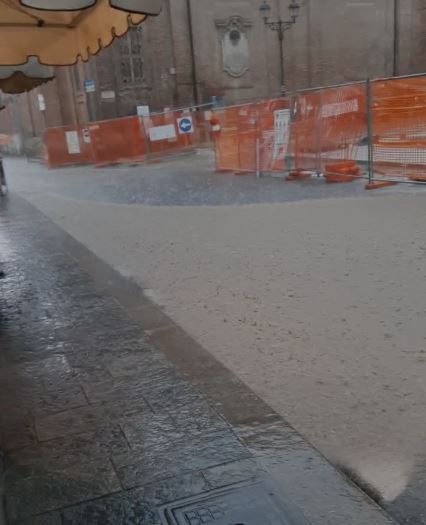 Il violento temporale pomeridiano di ieri ha colpito anche Chieri, ma senza particolari danni. Inedite, comunque, queste immagini di Piazza Cavour ridotta ad un lago (foto di Pierangelo Cauda)