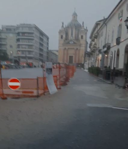 Il violento temporale pomeridiano di ieri ha colpito anche Chieri, ma senza particolari danni. Inedite, comunque, queste immagini di Piazza Cavour ridotta ad un lago (foto di Pierangelo Cauda)