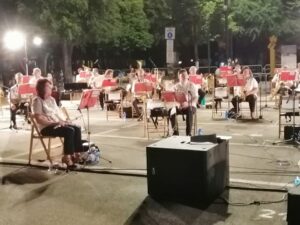 L’Amministrazione comunale di Nizza Monferrato, per la rassegna “Nizza è… ritroviAMOci“, ha organizzato un festival per chi si trova a passare un periodo estivo nella città di Nizza, per offrire momenti di divertimento a chi rimane in città, proponendo tre serate in Piazza Garibaldi all’insegna del divertimento in sicurezza. Domenica 5 luglio, dalle 21:15, nel primo appuntamento delle serate musicali estive di Nizza Monferrato, ha visto esibirsi il concerto del Corpo Bandistico Musicale – Banda Musicale Nizza: spettacolari come sempre. E’ stato il primo dei tre appuntamenti di “RitroviAMOci”, che si svolgono tenendo conto delle regole di sicurezza e distanziamento sociale. In programma il consueto repertorio di musica sinfonica, colonne sonore e musica leggera, sotto la direzione del maestro Giulio Rosa e della presidente Michela Daddio.