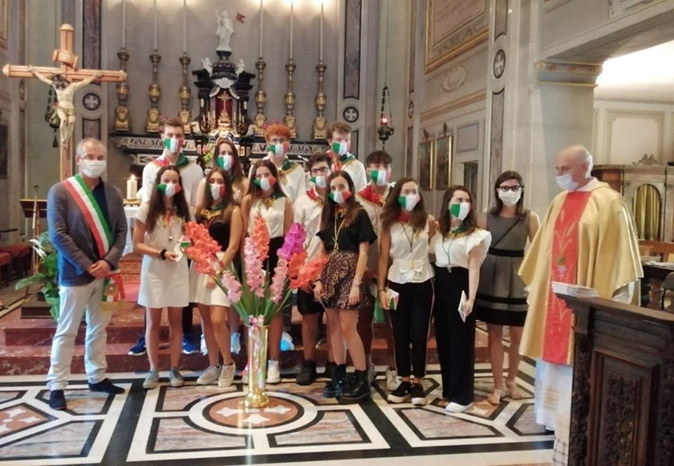 Sabato sera è avvenuto il grande concerto per San Giacomo da parte della banda musicale “Maria Gianussi” di Agliano,diretta dal maestro Cristian Margara nell’area del castello. Si ringrazia il Gruppo Alpini Agliano Terme per la collaborazione! La vita dei nostri Santi appartiene alla storia e sono loro stessi a fare storia e nel cammino dei cristiani aglianesi si è incontrato San Giacomo apostolo e a questo Santo è dedicata la volta del presbiterio della chiesa parrocchiale pitturata nel 1815/1816. Domenica mattina, durante la festa di San Giacomo Maggiore, è stata consegnata la costituzione ai coscritti della Leva2002. I ragazzi purtroppo non hanno potuto festeggiare come di consueto, per via delle limitazioni anti covid il loro ingresso in società, ma hanno comunque segnato il loro passaggio sostituendo la bandiera nazionale (pesantemente danneggiata durante l’ultimo nubifragio) al monumento ai caduti. Un bellissimo e importante gesto di fronte alla comunità. Tantissimi auguri ragazzi e viva la leva! Si ringraziano: Don Severino, il Gruppo Alpini Agliano Terme, la CRI di Montegrosso, il Comando dei Carabinieri di Agliano Terme e la Banda Musicale Maria Gianussi per l’ottima riuscita dell’evento. Terminate le scuole e prima dell’inizio dell’anno scolastico è tradizione festeggiare i ragazzi del paese che hanno compiuto 18 anni con la Festa della Leva che si svolge a inizio estate, subito dopo i festeggiamenti patronali per festeggiare un evento tanto caro ai giovani aglianesi e che viene ricordato con felicità e orgoglio negli anni. Certe tradizioni rimangono e fanno parte del bagaglio culturale e dell’unicità di ogni comunità, tanto che tuttora tanti giovani aglianesi attendono con ansia la cosiddetta festa e rappresenta ancora un passaggio obbligato nella vita di molti ragazzi.