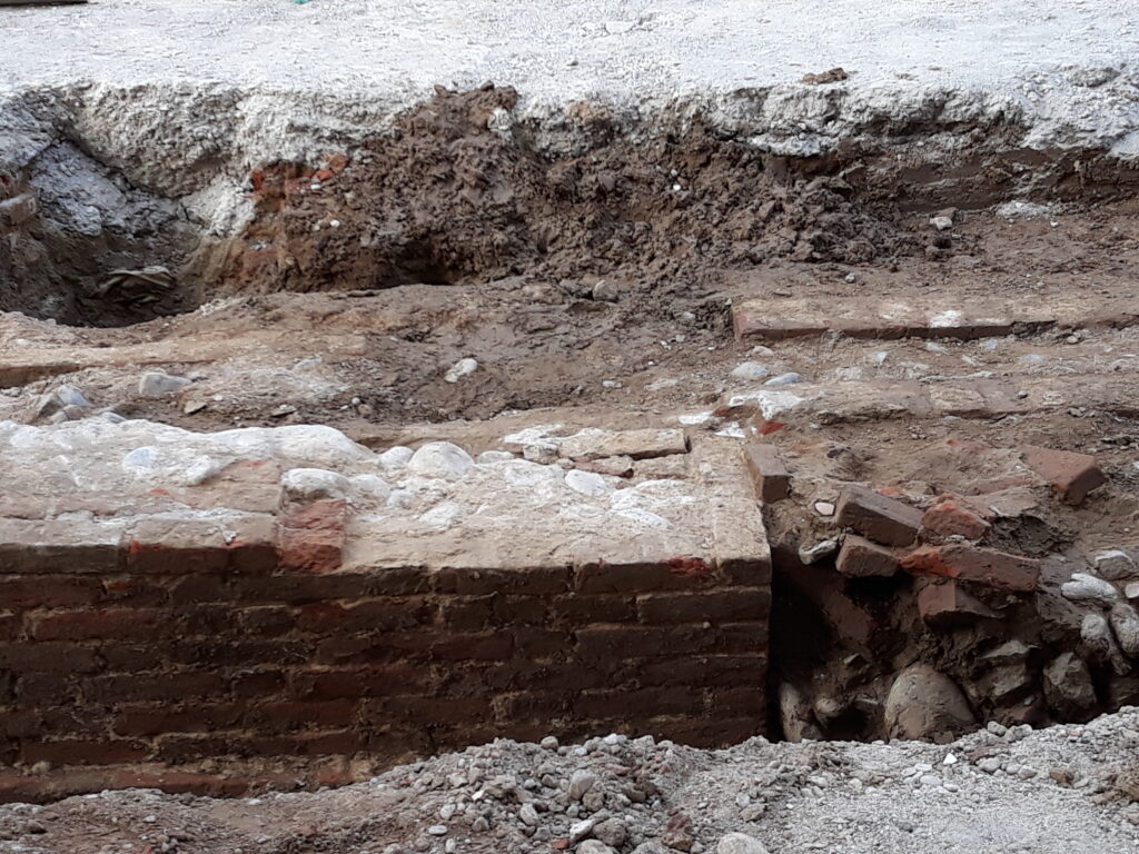 Chieri, resti di mura medievali dagli scavi in Piazza Cavour: sopralluogo della Soprintendenza