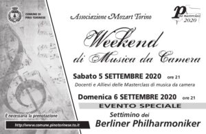 Il 5 e 6 settembre Pino Torinese torna protagonista della Musica da Camera d’eccellenza con l’edizione 2020 di Pino Masterclass. Due giornate di musica, confronto e formazione, che si concluderanno con un grande evento speciale in programma domenica 6 settembre: il Settimino dei Berliner Philharmoniker, una tra le più prestigiose orchestre sinfoniche del mondo. Docenti e allievi della Masterclass si esibiranno invece sabato 5 settembre in un concerto emozionante e coinvolgente.