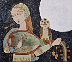 Intitola “Dame, animali preziosi, musica e altre storie” l’ultima sequenza di suoi lavori Giuliana. Anch’essi poggeranno su una parete, dopo che, su di essi, avremo fissato la nostra attenzione. Paiono i suoi, soggetti a tema che, in passato, in area Padana ebbero le loro forme vaghe anticipate dai tarocchini manieristi, e sviluppano giochi a metà tra quelli delle carte ed i percorsi incantati, detti gioco dell’oca, in cui si avanza lanciando i dadi della sorte… a dire il vero però, molto c’è ancora che da noi va detto per apprezzarne la beltà e, avanzando passo a passo, con stupore subirne il fascino.