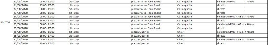 Riguardo ai tamponi previsti dal Ministero per i cittadini che rientrano in Italia provenienti da Spagna, Grecia, Croazia e Malta, tutte le Aziende sanitarie locali del Piemonte hanno definito il calendario dei test che possono essere eseguiti sia su prenotazione, sia attraverso libero accesso, secondo gli orari indicati nella specifica tabella allegata, valida fino al 30 agosto. Ecco gli orari per l’Asl TO 5