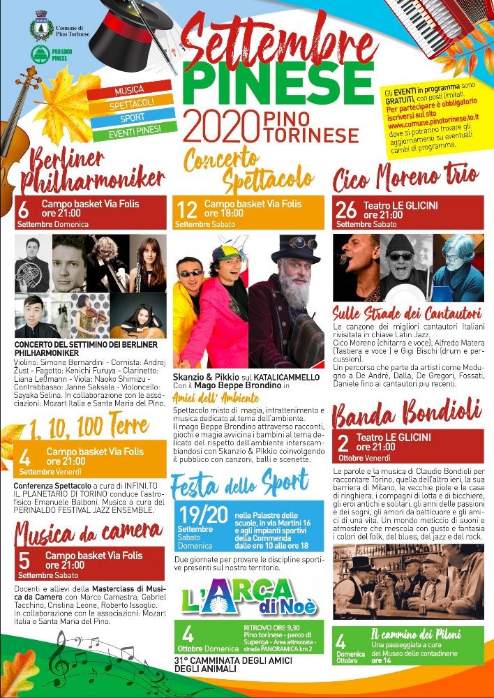 Pino Torinese: gli appuntamenti del “Settembre Pinese 2020”