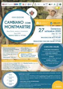 33^ edizione di Cambiano come Montmartre “Insieme verso il futuro”, domenica 27 settembre 2020. “Cambiano come Montmartre il 27 settembre animerà la città di Cambiano con il suo tradizionale concorso di pittura estemporanea e altre iniziative artistiche e creative, tra tradizione e nuovi linguaggi espressivi e partecipativi. Quest’anno la manifestazione si è arricchita di eventi collaterali, già in corso sui canali social,e, in supporto alla manifestazione, viene adottata una nuova modalità di partecipazione che attraverso Facebook, Instagram, Youtube e le dirette on line di ChieriwebTV consentirà a tutti di partecipare in diretta alle inaugurazioni delle mostre, alle premiazioni, alle conferenze e interviste. Durante la giornata del 27 settembre, nel centro storico e al Munlab- Ecomuseo dell’argilla, si realizzeranno importanti iniziative nel rispetto di protocolli e linee guida in merito alla riduzione e prevenzione del contagio da COVID-19. ” Così in una nota Daniela Miron, Assessore alle Manifestazioni del Comune di Cambiano.