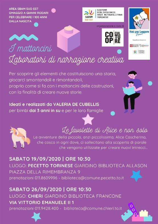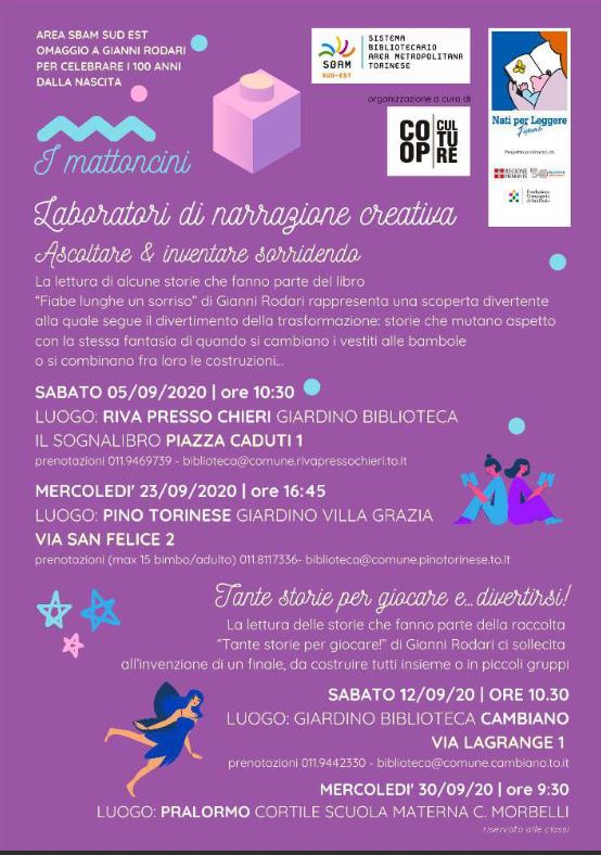 Qui di seguito le due pagine delle locandine dedicate alle iniziative in programma a Pino Torinese e nel Chierese in occasione del Centenario della nascita dello scrittore Gianni Rodari.