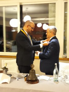 Si è svolta lo scorso 17 settembre la serata del Rotary di Chieri per il passaggio delle consegne tra presidente uscente ed entrante. Presenti autorità civili e rotariane, Alessandro Pantosti Bruno ha ceduto le insegne della presidenza al fratello Alberto: un fatto storico che un presidente succeda al fratello. Nel discorso di chiusura, il presidente uscente ha ricordato i momenti lieti e tristi di un anno particolare, caratterizzato da un lungo lockdown che non ha però impedito ai rotariani di incontrarsi, virtualmente, sul web. Nelle foto, il passaggio delle consegne e le prime parole da presidente di Alberto Pantosti Bruni