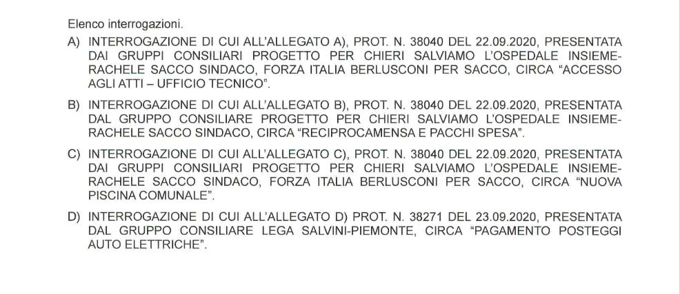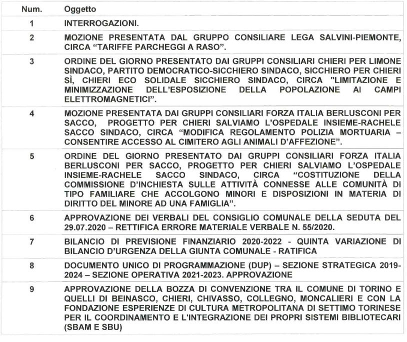 Torna il consiglio comunale in videoconferenza a Chieri. E’ convocato per mercoledì 30 settembre alle 19,20. Ecco gli argomenti che saranno trattati.
