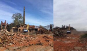 Valfenera- Demolita la ciminiera della fornace, simbolo dello sviluppo industriale del secolo scorso