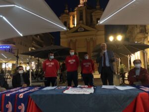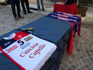 A Chieri, Piazza Cavour ha ospitato la presentazione del San Giorgio Volley, griffato Cascina Capello Chieri, che per la prima volta nella sua storia parteciperà al campionato di serie C femminile. Dirigenza, sponsor, staff tecnico, giocatrici e i rappresentanti degli organi di stampa sono intervenuti all’evento che si è svolto nello spazio all’aperto dell’Agrigrill Cascina Capello. Alla serata di gala hanno presenziato anche le autorità cittadine rappresentate dal Sindaco Alessandro Sicchiero e da Roberto Quattrocolo, vice Sindaco con delega allo sport. A fare gli onori di casa è stato Roberto Piovano, presidente della società: «E’ la prima volta nella storia – introduce il massimo dirigente del sodalizio chierese – che il nostro club fondato nel 1985 arriva a questo livello. E lo abbiamo raggiunto in momento che è difficile per tutti. Non potevamo non celebrare questo traguardo in una rinnovata piazza Cavour che è il salotto della nostra città». Sono quindi state presentate le nuove maglie bianche, rosse e blu che le atlete indosseranno per tutta la stagione sportiva 2020-2021. Prevarrà invece il rosso nella maglia del libero. «Per tutto il campionato – prosegue Roberto Piovano – Cascina Capello sarà il nostro main sponsor. Ci sono anche altre aziende del territorio che hanno deciso di darci una mano e di appoggiarci in questa avventura. Il San Giorgio Volley, che da adesso chiameremo Cascina Capello Chieri, non è solo la prima squadra ma anche le formazioni giovanili e i corsi del mini volley a cui hanno partecipato oltre 100 bambini e bambine negli anni scorsi». Ha preso quindi la parola Antonio