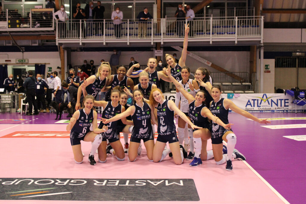 Dopo due ore e 8 minuti di gioco la Reale Mutua Fenera Chieri ’76 batte 3-2 la Saugella Monza. Si tratta della prima vittoria in A1 contro la squadra brianzola, team di prima fascia che pur in una serata un po’ fallosa ha confermato la sua forza. Un aspetto, questo, che dà ulteriore valore alla vittoria fortemente voluta e ottenuta dalle biancoblù al termine di una partita a tratti bellissima, a tratti giocata sul filo della stanchezza e del nervosismo, sempre molto intensa. Le ragazze di Bregoli si sono aggiudicate primo, terzo e quinto set, perdendo gli altri due sul filo di lana. Tanti i progressi nel gioco e nell’atteggiamento rispetto alle ultime uscite contro Novara e Cuneo. Il servizio più incisivo è stato il primo anello di una catena sviluppata a dovere anche nelle successive fasi di gioco. Migliori realizzatrici da un lato Grobelna e Perinelli (16), dall’altro Van Hecke (22) e Orthmann (17). Il premio di MVP è andato ad Alessia Mazzaro ma è giusto sottolineare il prezioso contributo arrivato da tutte le chieresi chiamate in causa, compreso chi era inizialmente in panchina, da Mayer a Frantti, da Alhassan a Laak, da Meijers a Gibertini, per una vittoria appagante come lo sono le vere vittorie di squadra.