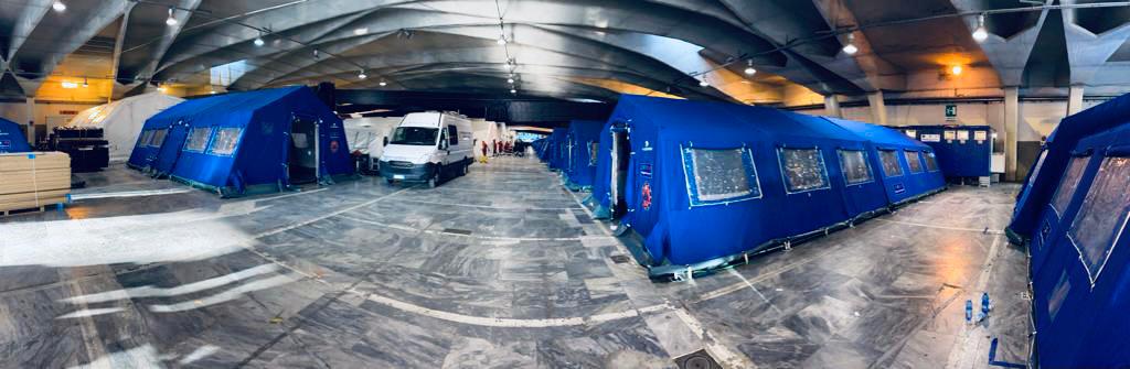 Oggi al Padiglione V di Torino Esposizioni sono state montate le tende messe a disposizione della Regione Piemonte dalla Provincia Autonoma di Trento. Procedono così i lavori di realizzazione di questa area sanitaria dedicata a pazienti Covid a bassa intensità che accoglierà 55 tensostrutture messe a disposizione anche dalla Croce Rossa e dalla Regione attraverso la Protezione civile e la Maxiemergenza 118 (con il Field Hospital, EMT 2 Emergency medical team, struttura unica in Italia e tra le sole 4 presenti in Europa). Il V Padiglione, messo a disposizione dal Comune di Torino su richiesta dell’Unità di Crisi della Regione Piemonte e con la collaborazione della Prefettura di Torino, accoglierà oltre 450 posti letto che saranno gestiti in forma integrata dalla AOU Città della Salute di Torino, dall’Asl Città di Torino e dalla Maxiemergenza 118. La Centrale 118 e il sistema di emergenza territoriale si occuperà, invece, di trasporti sanitari e di quelli in emergenza. La fine dei lavori è prevista intorno al 20 novembre.