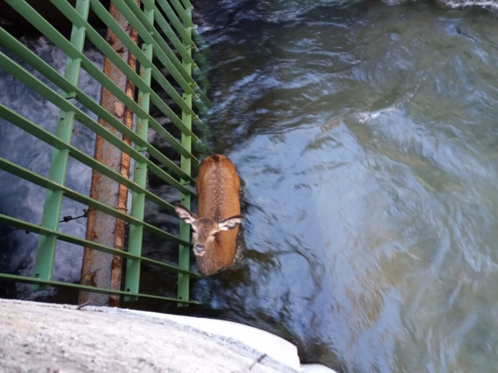 SALVATO UN GIOVANE CERVO CADUTO NEL CANALE CHE ALIMENTA LA CENTRALE IDROELETTRICA DI CHAMPBONS DI EXILLES