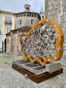 BIELLA, L’OPERA “DX PLANET SX” DELL’ARTISTA PAOLO BARICHELLO AL FIANCO DEL BATTISTERO