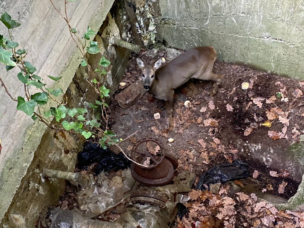 A VALLO TORINESE SALVATA UNA FEMMINA DI CAPRIOLO CADUTA IN UNA CISTERNA PER L’IRRIGAZIONE
