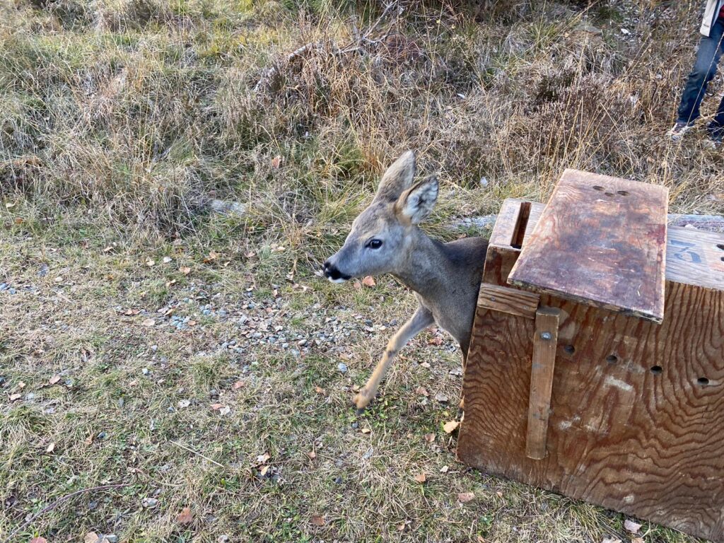 A VALLO TORINESE SALVATA UNA FEMMINA DI CAPRIOLO CADUTA IN UNA CISTERNA PER L’IRRIGAZIONE