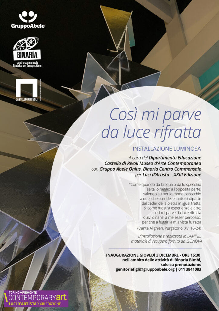 CASTELLO DI RIVOLI, INAUGURAZIONE INSTALLAZIONE LUMINOSA “COSI’ MI PARVE DA LUCE RIFRATTA”