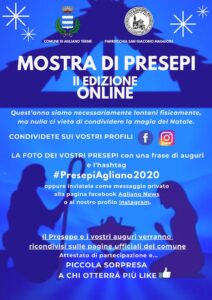 Dopo il successo dell’anno scorso, il comune di Agliano Terme e la Parrocchia di San Giacomo Maggiore presentano la II^ edizione della mostra dei presepi. Gli stessi, preso atto dell’attuale situazione di emergenza sanitaria hanno però deciso di non esporre le opere. ma di raccogliere virtualmente le foto dei presepi realizzati dagli aglianesi e non solo, che si svolgerà attraverso Facebook. Chi intende partecipare può inviare una o più foto del presepe realizzato in qualsiasi materiale, forma e dimensioni all’hastag # PresepiAgliano2020 oppure inviatela come messaggio privato alla pagina facebook Agliano news o sul profilo Instagram. L’invito è mettere un like alle relative foto caricate e a fine mostra, i presepi che otterranno più like otteranno un premio simbolico e a tutti l’attestato di partecipazione. Questa iniziativa si propone quale gesto di fiducia e di augurio, un modo per “gettare” il cuore e lo sguardo oltre ogni ansia, ogni smarrimento, oltre le innumerevoli difficoltà che stiamo vivendo, così che il Natale rechi speranza nelle nostre case. Quest’anno siamo necessariamente lontani fisicamente ma nulla ci vieta di condividere la magia del Natale. Il primo presepe della mostra online è realizzato dai bambini della scuola dell’Infanzia, che hanno usato i pezzi originali delle suore salesiane! Anche se in piena pandemia arriverà il Natale, molti troveranno nella costruzione di un presepe la possibilità di comunicare fede e arte e soprattutto speranza. È questa la nuova iniziativa in grado di garantire a tutti la possibilità di ammirare la bellezza del presepe che ha origini medievali e tutte le foto verranno messe in rete e rappresenteranno una sorta di augurio affinché tutti possano passare un buon Natale ed inziare bene il 2021.