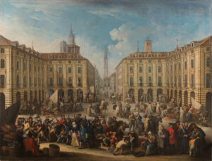 La piazza del mercato di Porta Palazzo a Torino, dipinto da Giovanni Michele Graneri: aneddoti e curiosità sul mercato più grande d’Europa.