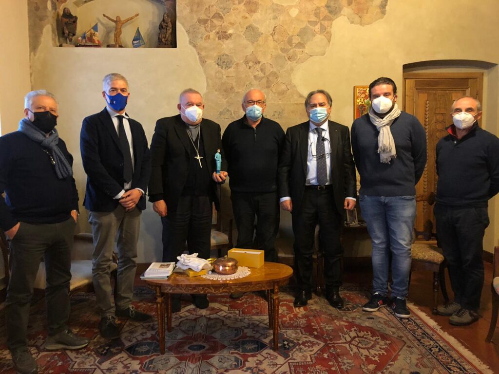 Nella foto, da sx a dx: Antonio Elia, Michele Giovanardi, Vescovo Mons. Brambilla, Antonio Ferrari, Amleto Impaloni, Paolo Favini, Isidoro Cannici