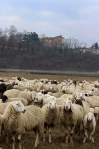 Il pastore, il signor Patrick, ha raccontanto: ”ho fatto scendere il gregge dagli alpeggi della Val Chisone all’arrivo della prima neve. Abbiamo attraversato i prati dell’Abbazia di Santa Maria di Casanova e ora ci fermeremo un paio di giorni nei campi dell’Azienda Agricola del Castello di Pralormo”. Il gregge è composto da pecore di razza Biellese (caratterizzate da lunghe orecchie) e di razza Taccola (caratterizzate dalle piccole orecchie color rosa). Ci sono anche tanti agnellini di circa 10 giorni.