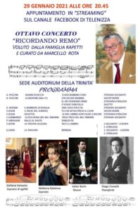 Dopo la pausa delle festività natalizie, riprendono le attività, anche se a distanza concepite per rimanere vicini al pubblico anche in questo periodo di chiusura dei teatri. Un’occasione per i più giovani per scoprire la musica operistica e per i meno giovani di rivivere, attraverso le musiche, un periodo indimenticabile della storia operistica italiana. La serata musicale è voluta dalla famiglia Rapetti per ricordare il compianto fratello Remo, un grande appassionato di teatro e musica operistica ed è organizzata a cura del maestro Marcello Rota e dell’Accademia di cultura nicese L’Erca, con il patrocinio del Comune di Nizza che si terrà la sera di venerdì 29 gennaio alle 20,45. In un momento in cui il pubblico non può seguire gli spettacoli in teatro, ecco che lo streaming cerca di sopperire a questa mancanza. Così, anche nel 2021 nonostante il covid 19 la famiglia Rapetti con l’Erca vuole valorizzare in ogni forma e con ogni mezzo la tradizione del concerto legato alla città di Nizza Monferrato e hanno pensato di investire sul canale Facebook di Tele Nizza dove posta settimanalmente registrazioni passate di spettacoli teatrali e tanto altro. C’è anche un bel gruppo di appassionati che ormai sono affezionati a questo concerto e lo streaming può apparire molto utile: aiuta a diffondere la musica, può far avvicinare al melodramma persone lontane, chi non può partecipare in diretta, è un ottimo modo di mantenere vivo questo straordinario patrimonio artistico. Non può diventare in alcun modo il sostituto dello spettacolo dal vivo, ma ciò che conta è poter condividere questi momenti. L’affinità e la conoscenza musicale dei due grandi maestri Rota e Crovetti al pianoforte e la versatilità delle due soprane Stefania Delsanto e Stefania Kybalova e del tenore Valter Borin, rendono possibile innalzare ulteriormente il grado di intensità delle esibizioni, dando un valore aggiunto all’intero show. Non ci resta che aspettare la sera del 29 gennaio per rimanere affascinati del ricco programma e grande concerto lirico vocale dove saranno eseguite arie di Puccini, Rossini e Verdi da La Boheme, Il Barbiere di Siviglia, La Traviata. A fare da sfondo e ad accoglierne le note vedrà l’Auditorium della Trinità trasformarsi così in un palcoscenico a cielo aperto dove i cantanti diretti da Marcello Rota con al pianoforte Diego Crovetti eseguiranno un intenso concerto: sono questi gli ingredienti della serata organizzata dall’associazione L’Erca con un evento speciale, ormai una tradizione dal 2014, un piccolo rito e soprattutto un gesto d’amore verso Remo.