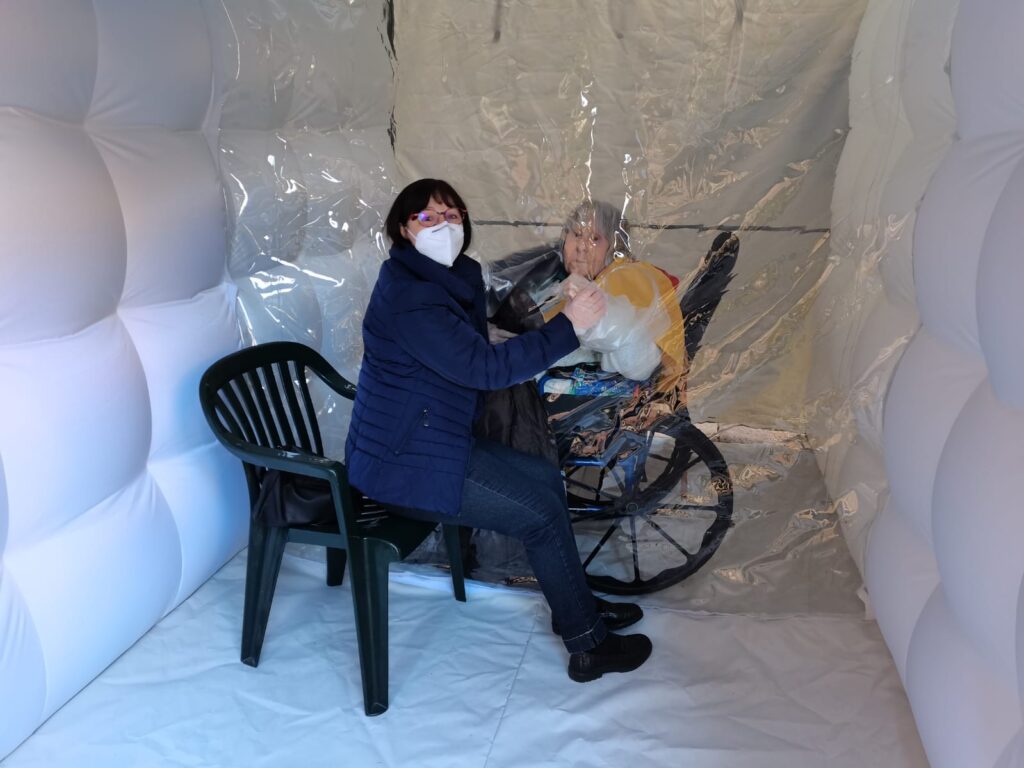 “Oggi è stata consegnata alla Casa di Riposo Orfanelle dal Sindaco Alessandro Sicchiero la stanza degli abbracci, donata dal Comune di Chieri. Oggi abbiamo sentito tutta la Città vicina ai nostri anziani, un momento di vera emozione per allontanare il senso di solitudine che ha caratterizzato questo lunghi mesi. La stanza, subito allestita nel cortile interno della Struttura, ha potuto finalmente far riabbracciare dopo quasi un anno anziani e familiari visibilmente commossi. Abbracci e carezze, sono fondamentali per il benessere delle nostre ospiti anziane, che per lunghi mesi hanno sofferto delle limitazioni imposte dall’emergenza Covid, lenite dalle cure e dalla dedizione di tutti i nostri operatori. La Casa di Riposo ha sempre mantenuto ed assicurato le visite con i familiari in sicurezza, nel periodo estivo nel giardino della struttura, ed in seguito in una postazione interna dedicata attraverso l’atrio vetrato dell’ingresso con un collegamento audio. Da oggi potremo organizzare le visite anche con l’ausilio della “stanza degli abbracci”. Si tratta di una struttura gonfiabile in pochi secondi nella quale il contato fisico che consente l’incontro in sicurezza tra Ospiti e parenti è reso possibile da una parete in materiale plastico lavabile trasparente, che divide il modulo in due ambienti protetti, nella quale sono ricavate apposite maniche che permettono di abbracciarsi o stringersi le mani e di sentirsi meno soli.” Lo scrive in una nota Paola De Nale, Direttrice della Casa di Riposo Orfanelle di Via Tana, a Chieri