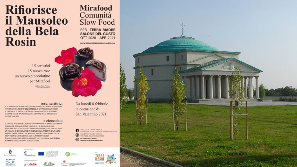 Per il 14 febbraio, la festa degli innamorati, nell’ambito di Terra Madre Salone del Gusto, verranno piantate quindici nuove piante di rose selezionate dalla vivaista e autrice de Il romanzo della rosa, Anna Peyron, e abbinate ad altrettante scrittrici scelte dalla community social e dai gruppi di lettura delle biblioteche cittadine. Ogni rosa sarà accompagnata da un pensiero che ne associa le caratteristiche allo spirito delle scrittrici. La più votata, Alda Merini, è stata abbinata alla Scarlet Fire, “una rosa rosso fuoco per rappresentare la passione, l’amore, la sofferenza, il riscatto della donna e della poetessa”.