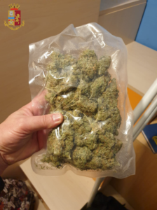 Sono da poco passate le 22.30 in via Nizza quando una pattuglia della Squadra Volanti nota un ragazzo in attesa davanti ad un portone. Il passaggio dei poliziotti provoca un’evidente stato di agitazione nel soggetto che lo porta a voltarsi rapidamente verso lo stabile, fingendo indifferenza. La reazione viene però notata dagli operatori che si avvicinano a lui, chiedendo spiegazioni circa la sua presenza in strada considerato l’orario, ma questi inizia a fornire una serie di giustificazioni inattendibili. Nelle fasi successive al controllo, il giovane consegna spontaneamente una bustina contenente della marijuana, spiegando di trovarsi lì poiché in attesa dell’arrivo di suo cugino. Nello stesso istante il portone dello stabile viene aperto e compare il parente del ragazzo che, ignaro della presenza della Polizia, consegna una bustina di marijuana identica a quella del cugino. Il ragazzo riferisce inoltre che la droga gli era appena stata venduta da un soggetto presente al party che si stava svolgendo in un appartamento al primo piano. Dopo aver sanzionato entrambi per detenzione di sostanza stupefacente, i poliziotti si recano nell’abitazione indicata. Una volta all’interno, gli operatori appurano la presenza di 9 persone, di un’età compresa tra i 15 e i 20 anni, nel pieno svolgimento di quello che a tutti gli effetti sembra essere un festino a base di droga, con i partecipanti impegnati nel confezionamento di spinelli da consumare durante i festeggiamenti. I ragazzi vengono identificati e sanzionati. Due di loro, diciottenni indicati come i pusher di riferimento per la serata, vengono trovati in possesso di oltre 25 grammi di marijuana, cellulari e alcune centinaia di euro, provento delle compravendite avvenute durante la festa. Alla luce dei fatti i poliziotti perquisiscono le abitazioni di entrambi. Nel primo appartamento 110 grammi di marijuana vengono rinvenuti all’interno di una busta mentre nella seconda dimora sono circa 30 i grammi della stessa sostanza, nascosta in alcuni sacchetti di plastica ed in un barattolo. Accanto viene trovato del materiale da confezionamento ed un bilancino di precisione.