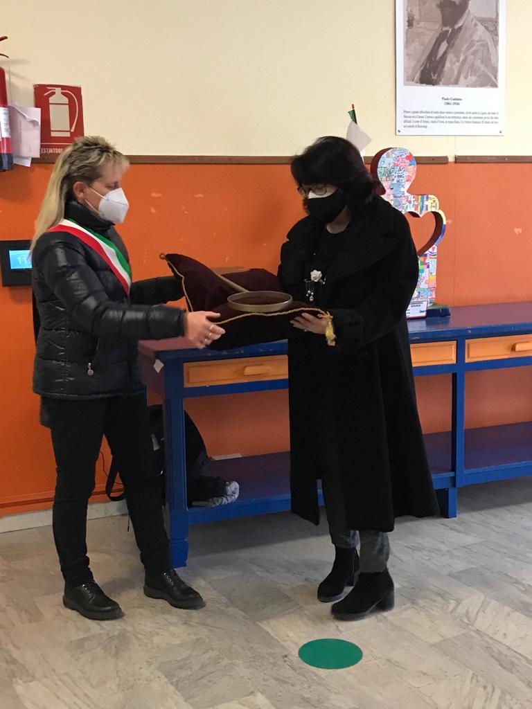 Tradizione rispettata, ma con doverose modifiche legate alla pandemia, al Carnevale di Poirino, dove la consegna simbolica delle chiavi del paese alle maschere tradizionali è stata sostituita con la consegna delle stesse chiavi ai ragazzi dell’Istituto Comprensivo. Saranno loro a ‘governare’ Poirino fino alla fine del Carnevale. Nelle foto, la consegna simbolica fatta dal sindaco Angelita Mollo alla vicepreside Annamaria Gioda.