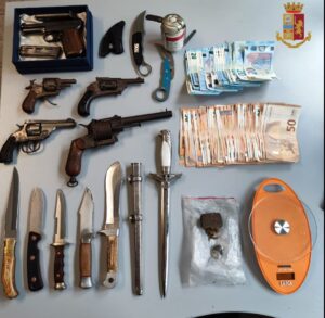 Personale del Comm.to San Secondo, lo scorso mercoledì mattina, in conclusione di alcune indagini relative a un soggetto italiano che esercitava l’attività di spaccio nel quartiere Santa Rita, è risalito ad un appartamento sito in corso Sebastopoli ove risiede un ventitreenne italiano, insieme al padre. Presentatisi nell’alloggio unitamente a personale del Nucleo Cinofili ed al cane poliziotto Kira, gli agenti hanno rinvenuto, addosso al giovane e nella sua camera, 40 grammi di hashish, un bilancino di precisione e 2650 €. Il denaro era custodito all’interno di un cofanetto nella stanza del giovane, insieme a 5 pistole, che sono state debitamente sequestrate. Si tratta di un’arma resa inerte e di 4 piccole rivoltelle storiche. Inoltre, sul medesimo pensile erano presenti 8 fra pugnali e armi da taglio. Nessun’arma risulta essere mai stata denunciata. Tutto è stato sottoposto a sequestro. Il ventitreenne  è stato denunciato per detenzione della sostanza stupefacente, per la detenzione abusiva delle armi.