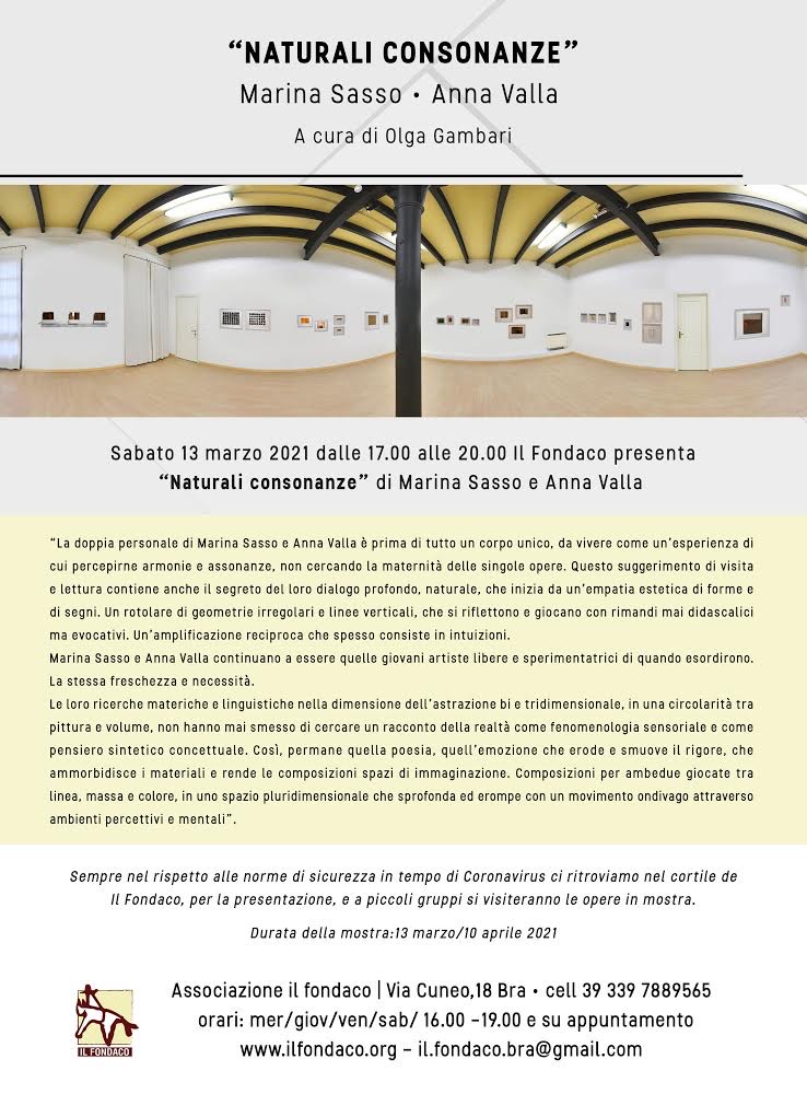BRA: DOPPIA PERSONALE DI MARINA SASSO E ANNA VALLA