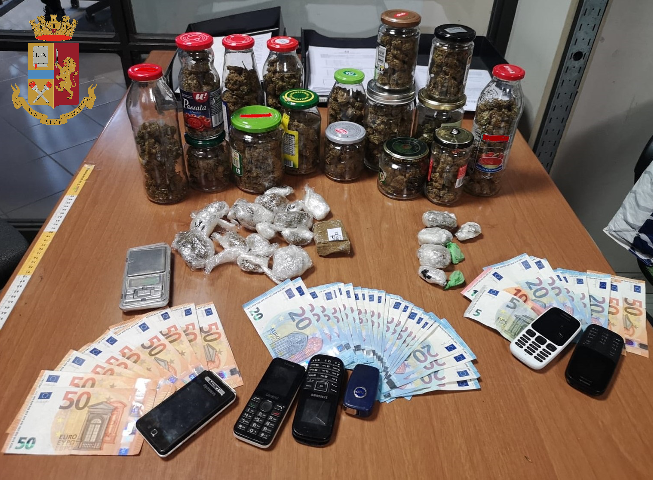 Giovedì sera, gli agenti della Squadra Volante notano in corso Tassoni, un ragazzo sporgersi all’interno del finestrino di un’auto ed effettuare lo scambio, terminato il quale, il giovane si dilegua in via Nicola Fabrizi. Gli agenti, però, fermano l’auto il cui conducente dichiara di aver appena restituito il cellulare a suo cugino del quale, tuttavia, non sa fornire le generalità. I dubbi degli agenti vengono fugati dal ritrovamento di alcune dosi di marijuana e cocaina che l’uomo, un quarantunenne italiano, costudisce parte nella tasca parte negli slip. La perquisizione consente anche di rinvenire 250 euro suddivisi in banconote di piccolo taglio, verosimilmente il profitto delle precedenti cessioni. Nel corso della perquisizione a casa dell’uomo, gli agenti trovano, sotto il mobile del lavello 16 barattoli in vetro contenenti marijuana. Un altro barattolo viene poi ritrovato nell’armadio della camera da letto insieme a mezzo panetto di hashish e a un bilancio di precisione. In una giacca, gli agenti rinvengono numeroso denaro contante. Complessivamente, i poliziotti sequestrano 850 grammi di stupefacente e 1255 euro. Il quarantunenne viene arrestato per spaccio di sostanze stupefacenti e sanzionato amministrativamente per il mancato rispetto delle norme anticovid. A suo carico oltre 12 precedenti di polizia frutto di una carriera iniziata dal 1996 tra possesso di armi e spaccio dei sostanza stupefacente.