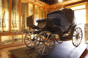 Da mercoledì 17 marzo, in occasione del 160° anniversario della nascita dello Stato italiano, il percorso dei Musei Reali, nella Rotonda dell’Armeria Reale, si arricchisce con la carrozza di Vittorio Emanuele II, protagonista con Cavour e Garibaldi del Risorgimento, primo Re d’Italia dal 1861 al 1878 e di cui è stato celebrato, nel 2020, il duecentesimo anniversario della nascita. L’arrivo a Torino della carrozza rappresenta un importante tassello del percorso dei Musei Reali, in una delle sezioni che maggiormente colpiscono l’immaginazione dei visitatori. Il mezzo sarà infatti collocato a pochi passi dalla loggia dalla quale Carlo Alberto annunciò, il 4 marzo 1848, la promulgazione dello Statuto. Appartenente alle Collezioni Presidenziali del Quirinale, la carrozza denominata Mylord, ricordata negli inventari con la definizione antica di ‘Polonese’ o ‘Polacca’, era uno dei mezzi di trasporto preferiti da Vittorio Emanuele II per le sue uscite private a Roma. È un modello aperto e basso, privo di portiere, a quattro ruote e a due sedili con cassetta di guida per il cocchiere, realizzata dalla ditta romana dei fratelli Casalini. Oggi la carrozza fa parte del nucleo più antico e prezioso della Collezione Presidenziale. Nell’inventario del 1882 figura una nota manoscritta a fianco che recita: “Le Polonesi erano le carrozze di cui abitualmente si serviva il Gran Re Vittorio Emanuele II [….]”. Il brano prosegue sottolineando che “questa seconda fu l’ultima adoperata in Roma avanti la sua morte” a ricordare, quindi, come questo mezzo fosse particolarmente amato dal re. In tale occasione viene presentato anche il nuovo allestimento Le armi del Re, una selezione di 21 oggetti di notevole pregio e importanza storica, recentemente restaurati, che facevano parte delle ricche raccolte personali di Vittorio Emanuele II. Oltre alle armi, la collezione comprende bandiere, uniformi, onorificenze e altri oggetti strettamente personali: alcuni si collegano al ruolo pubblico del sovrano, come i doni diplomatici o le armi che ricordano le battaglie del Risorgimento, altri sono da mettere in relazione con gli interessi personali di Vittorio Emanuele II, primo fra tutti la caccia, documentata da una spettacolare collezione di fucili e coltelli.