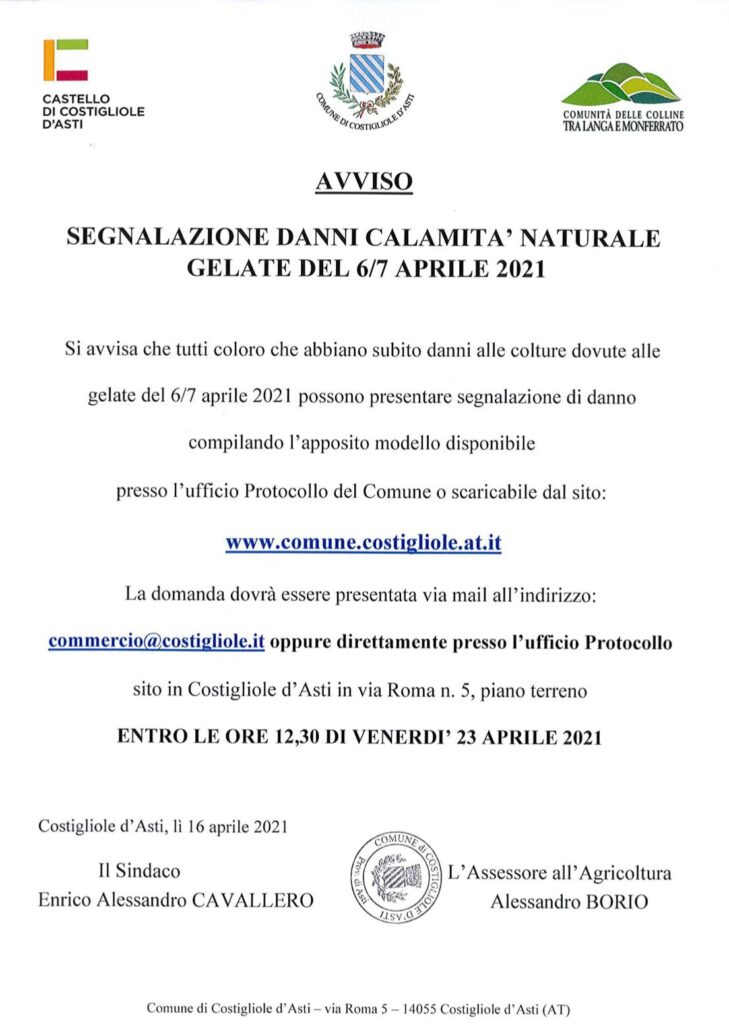 Costigliole. Per i danni da gelate segnalazioni entro il 23 aprile