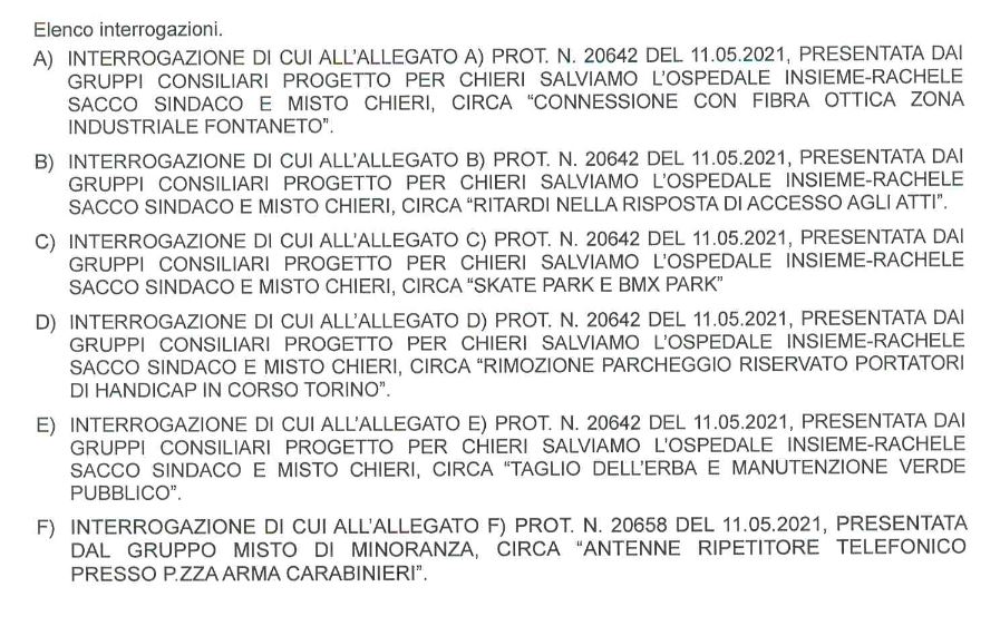 Chieri, consiglio comunale in videoconferenza martedì 18 e mercoledì 19 maggio