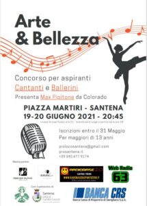Santena, 19 e 20 GIUGNO, ore 20.45. Un vero e proprio talent show come segnale di ripresa degli spettacoli a Santena. Sabato 19 giugno e domenica 20 giugno, a partire dalle 20,45 la piazza principale di Santena ospiterà il festival del canto e della danza “Arte & bellezza”. L’iniziativa è promossa dal Comune di Santena e dalla Pro Loco. Si sfideranno a suon di musica cantanti, solisti o duetti vocali e ballerini dai 13 anni in su. Alessia Perrone e Carlo Mosso saranno i presentatori della serata di semi-finale, il 19 giugno, mentre per la serata della finale Alessia Perrone sarà accompagnata da Max Bubbi Pipitone, di Colorado. Entrambe le serate saranno ad ingresso libero. Tra gli ospiti Loris Gallo, Angela Costabile e le vincitrici della scorsa edizione Mia Oliver e Anxhela. Anche sponsor e radio sosterranno l’evento.”La giuria è di altissima qualità e decreterà i vincitori di entrambe le categorie artistiche, permettendo l’accesso a premi molto ambiti a chi se li aggiudicherà-chiarisce Angela Costabile, direttrice artistica dell’evento-Credo sia la perfetta occasione per cantanti e ballerini di mostrare il proprio talento, ma anche di calcare nuovamente il palcoscenico in un periodo di stallo per tutti gli artisti, come quello che stiamo vivendo”.Il presidente della Pro Loco Santena aggiunge: “L’obiettivo è anche quello di portare un po’ di svago e divertimento al paese, nel rispetto costante delle norme di distanziamento sociale per arginare la diffusione del virus Covid-19”. Per informazioni e iscrizioni è possibile telefonare al 3406779174 oppure scrivere un’e-mail all’indirizzo prolocosantena@gmail.com. Maggiori informazioni su: https://www.prosantena.it/festival-arte-bellezza-2021/