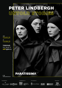La mostra “Peter Lindbergh: Untold Stories”, è un autoritratto e, allo stesso tempo, un grande omaggio al maestro fotografo perché è un progetto voluto e curato da lui in prima persona e che debutta e apre purtroppo non in sua presenza . Questo progetto è anche il frutto di una grande collaborazione con il Kunstpalast di Düsseldorf e la Peter Lindbergh Foundation di Parigi e inaugura un ciclo di mostre internazionali che porteranno a Torino con Paratissima grandi figure dell’arte che hanno sempre saputo mescolare ambiti e linguaggi artistici. Lindbergh vive in ogni immagine di questa mostra, nel ricordo delle figure che ne testimoniano la persona e il lavoro e che sono qui presenti per l’inaugurazione: Benjamin Lindbergh, figlio di Peter e l’amico Anton Corbijn, che sarà protagonista di una prossima mostra negli stessi spazi durante l’edizione di Paratissima di novembre 2021. A giugno (Inaugurazione il 18) debutta anche l’edizione 2020 di Paratissima bloccata da mesi per la pandemia e le sue restrizioni. Paratissima è, inoltre, orgogliosa di dare vita al progetto #più1europerlaricerca, tramite il quale tutte le grandi mostre sosterranno la ricerca attraverso il contributo di 1 euro per ogni biglietto acquistato. Per la mostra “Peter Lindbergh: Untold Stories”, Paratissima ha scelto di sostenere un partner storico con cui sono state realizzate già altre lodevoli iniziative. Si tratta della Fondazione Piemontese per la Ricerca sul Cancro.