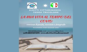 C’è tempo fino al 30 maggio per partecipare al concorso letterario nazionale “LA MIA VITA AL TEMPO DEL COVID”, organizzato dalle associazioni “Diritti cittadinanza del lago” e “Terra Tricolore”. Il tema proposto è concernente a raccontare l’esperienza vissuta durante il periodo Covid, un anno segnato da una dura pandemia, che ha colpito tantissime persone e ha richiesto sforzi enormi da parte tutti. Le opere raccolte nel concorso, poesie o racconti, costituiranno la testimonianza e la memoria storica in cui l’autore narra vicende e fatti a cui prese parte. Una giuria qualificata verificherà le opere, che potrebbero essere inserite in un libro dedicato all’iniziativa. Partecipare è semplicissimo: chiunque vorrà cimentarsi nell’elaborato proposto potrà scaricare il regolamento e la scheda di partecipazione sul sito www.diritticittadinanza.it,