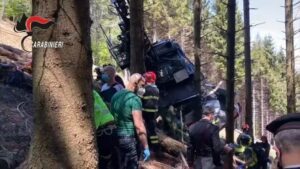 A cento metri dalla vetta, il cavo si spezza e la cabina precipita nel vuoto. E’ la tragedia della funivia che collega Stresa al Mottarone. Tutto accade intorno alle 13. A bordo della cabina, 11 persone, tra cui due bambini. Questi ultimi, al momento, pur gravissimi, sono gli unici sopravvissuti al disastro, il cui bilancio sale subito a 9 morti. I feriti, in codice rosso, trasportati con l’elisoccorso del 118 al Regina Margherita di Torino. La funivia aveva subito una revisione generale degli impianti tra il 2014 e il 2016 e aveva riaperto nel 2018.