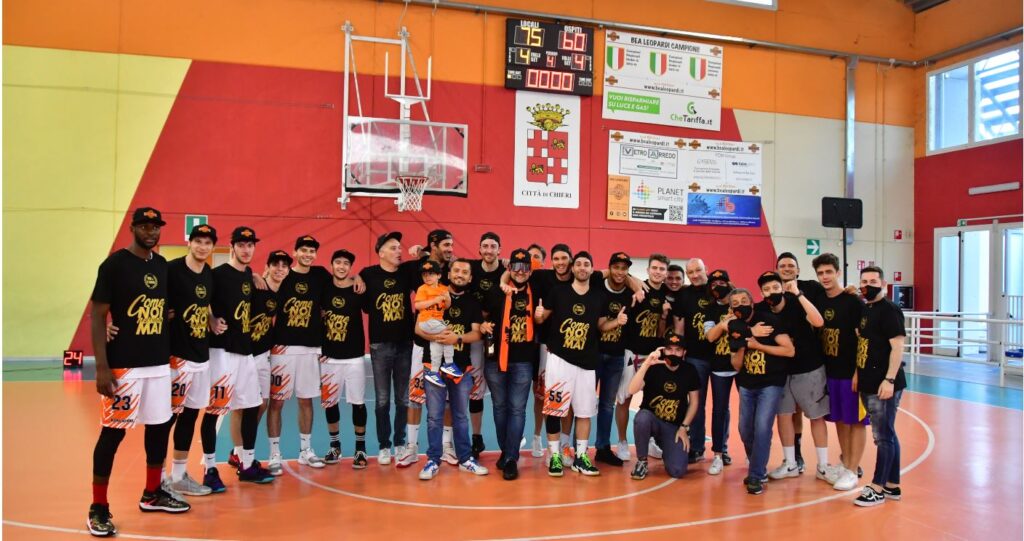 Dopo una stagione tanto particolare quanto esaltante, dopo un campionato sempre in testa fatto di nove vittorie in dieci partite, ora finalmente è ufficiale: con la vittoria di domenica con San Mauro la Planet Smart City BEA è promossa in C Gold con due giornate di anticipo!Un risultato storico per tutto il movimento chierese che mai aveva visto una propria squadra nel massimo campionato regionale ma anche per tutto il Progetto BEA, che in dieci anni è riuscita a scrivere una nuova pagina dello sport del nostro territorio. Facendo un passo indietro però, i Leopardi sono stati ancora una volta bravissimi ad interpretare e approcciare una partita sulla carta complicata, con un avversario talentuoso e sempre ostico come la San Mauro di coach Iannetti. Dopo pochi minuti di studio infatti, la Planet Smart City prende subito le redini del match: D’Arrigo detta bene i ritmi dell’attacco, Mosca attacca forte il ferro e Drame domina nel pitturato, con BEA che dopo 5′ e già sul 16-5. San Mauro prova a rallentare i Leopardi con il time-out dalla quale esce con una difesa più aggressiva a tutto campo, che però non argina comunque la manovra arancione che vede in Drame un rebus irrisolvibile per i giallo-blu. A 2′ dalla prima sirena BEA è sul 26-13, arrivando poi a chiudere la prima decina sul 30-17. Nella seconda frazione coach Vassalli allarga da subito le rotazioni, ma il livello specialmente difensivo rimane il medesimo, con l’area arancio-nera che appare veramente impenetrabile. Anche la difesa ospite però sale di tono, con BEA che pasticcia un po’ troppo diventando a tratti inconcludente. Il risultato è che dopo 5′ di frazione il risultato è ancora sul 34-19. Ci pensa Scalzo a sbloccare l’impasse con la tripla del +18, a cui seguono i liberi di Mosca e Scazo che lanciano BEA sul 42-20. Ancora uno Scalzo “on fire” sfrutta un bellissimo assist di Mosca per la tripla del 45-20 che chiude un primo tempo dominato dalla Planet Smart City BEA. Al rientro in campo BEA da subito una nuova sgasata, con l’8-0 di parziale che la porta sul +33. San Mauro però non vuole darsi per vinta, e complice anche un po di rilassamento della difesa di casa, inizia a rispondere colpo su colpo guidata da un Roncarolo ultimo a mollare. Il Capitano giallo-blu segna 13 punti in fila per i suoi, a cui però i chieresi rispondono comunque con le triple di D’Arrigo e Gile e con la fisicità nel pitturato di Drame, mantenendo il vantaggio stabilmente oltre la soglia delle 30 lunghezze. La tripla dagli 8 metri di D’Arrigo esalta la panchina locale, con gli ospiti però che rispondono ancora con il talento di Fornuto. 66-38 al 30′. Nell’ultima decina San Mauro sale prepotentemente di tono, dimezzando il gap arrivando in meno di 3′ minuti sul -16 grazie ad una grande pressione in difesa e ai canestri di Binovi, Fornuto e Orlando. BEA ci mette qualche minuto per sbloccarsi di nuovo, ma lo fa in grande stile con due palleggi arresto e tiro di D’Arrigo di pregevole fattura, tornando nuovamente sul +20. La partita non ha più molto da dire, con San Mauro che la onora fino alla fine e i Leopardi che la gestiscono con voglia e attenzione. Alla sirena finale è 75-60 è può scoppiare la festa BEA. Un risultato storico e sicuramente meritato per quanto visto in campo ma anche e soprattutto fuori, a coronamento di una progettualità seria e pluriennale capace di dare i suoi frutti.Non c’è tempo di perdersi in festeggiamenti eccessivi però: la Planet Smart City è attesa ora da altre due partite per chiudere la stagione, con l’obbiettivo di vincere il duello con Arona per il primo posto in classifica. Si parte da domenica, quando i Leopardi ospiteranno ancora al PalaCascinaCapello l’USAC Basket Rivarolo già sicura del terzo posto in classifica e del relativo spareggio con la terza del Girone B per il salto di categoria. Palla a due alle ore 18.00