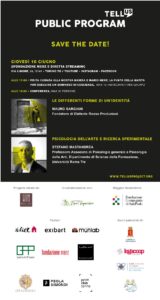 Secondo incontro del Public Program di TELL_US, a cura di Cosimo Veneziano, che si terrà giovedì 10 giugno presso la FONDAZIONE MERZ e terzo appuntamento che si terrà giovedì 17 giugno a PALAZZO BAROLO. GIOVEDÌ 10 GIUGNO 2021 @FONDAZIONE MERZ & DIRETTA STREAMING, via Limone, 24, 10141 – Torino TO / Youtube – Instagram – Facebook: h. 17.00 > visita guidata alla mostra Marisa e Mario Merz. La punta della matita può eseguire un sorpasso di coscienza, max 15 partecipanti per gruppo; h. 18.00 > conferenza – max 50 partecipanti  (Le differenti forme di un’identità, Mauro Sargiani, Fondatore di Elefante Rosso Produzioni e Psicologia dell’arte e ricerca sperimentale, Stefano Mastandrea, Professore Associato di Psicologia generale e Psicologia delle arti, Dipartimento di Scienze della Formazione, Università Roma Tre)